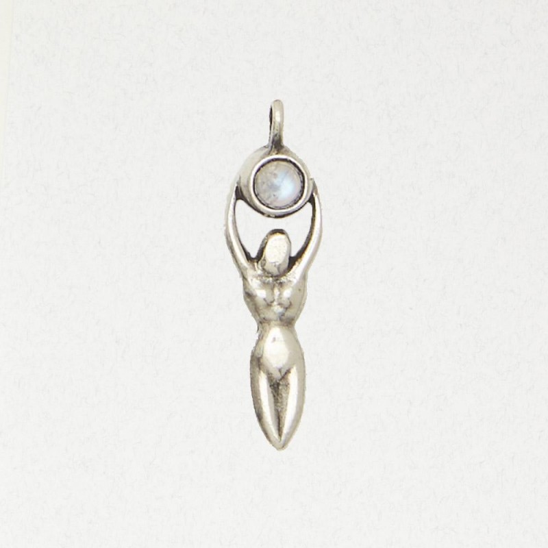 Although nobody seems to know exactly where this image comes from, the figure of a woman visualizing the moon in her upraised hands is one of the most important, even archetypal, symbols in women's spirituality. The Moon is female, mysterious, ancient and a source of life. She cocoons herself in darkness each month, and each month she emerges reborn into the view of the peoples of the Earth. The woman who aspires to union with the Goddess germinates these same qualities by developing her power to nurture both herself and others.