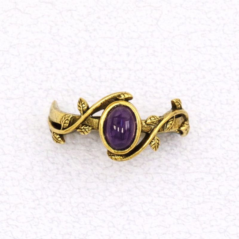 Bronze Ladies' Ring - Leaves Motif with Genuine Stone